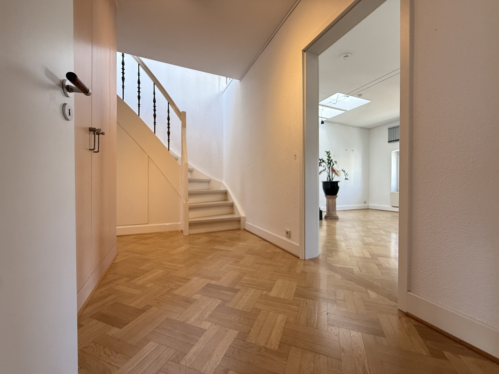 Zum Verkauf steht ein Einfamilienhaus in zentraler Innenstadtlage von Gelsenkirchen. Die voll unterkellerte Immobilie erstreckt sich über drei Etagen auf einem ca. 170 m² großen Grundstück mit einer Wohnfläche von knapp 188 m². Eine Aufstockung erfolgte 1990. Das Erdgeschoss ca. 62,71 m² wurde bislang als Werkstatt bzw. gewerblich genutzt und verfügt über einen Anbau mit direktem Zugang zum Hinterhof. Zusätzlich gehört ein ca. 75 m² großes Grundstück dazu, das als Parkfläche genutzt werden kann; auch von dort besteht Zugang zum Außenbereich. Der bepflanzte Hinterhof bietet eine grüne Rückzugsmöglichkeit mitten in der Innenstadt. Ein Stichweg führt entlang des Hauses zur Rückseite. Diese Ebene eignet sich flexibel für gewerbliche oder wohnwirtschaftliche Nutzung. Ein großzügiges Treppenhaus mit originalen Fliesenspiegeln erschließt die oberen Etagen. Das 1. Obergeschoss ca. 51,42 m² umfasst zwei Räume und eine helle, geräumige Küche mit Platz für Kochinsel und Essbereich. Das 2. Obergeschoss ca. 48,86 m² bietet ein hochwertig ausgestattetes Bad mit Dusche, Eckbadewanne und Bidet. Der großzügige Wohnraum ist durch Lichtkuppeln besonders hell. Versteckte Einbauschränke sorgen für zusätzlichen Stauraum. Das Dachgeschoss ca. 25,87 m² verfügt über einen hellen Raum und Zugang zum Balkon mit Gelenkarmmarkise. In allen Etagen liegt Echtholzparkett – im Erd- und Dachgeschoss Eiche, im 1. Obergeschoss Mahagoni. Der Keller bietet weitere Abstellflächen sowie direkten Zugang in den Außenbereich. Fernwärme liegt in der Straße an. Die Fußgängerzone ist nur eine Gehminute entfernt.