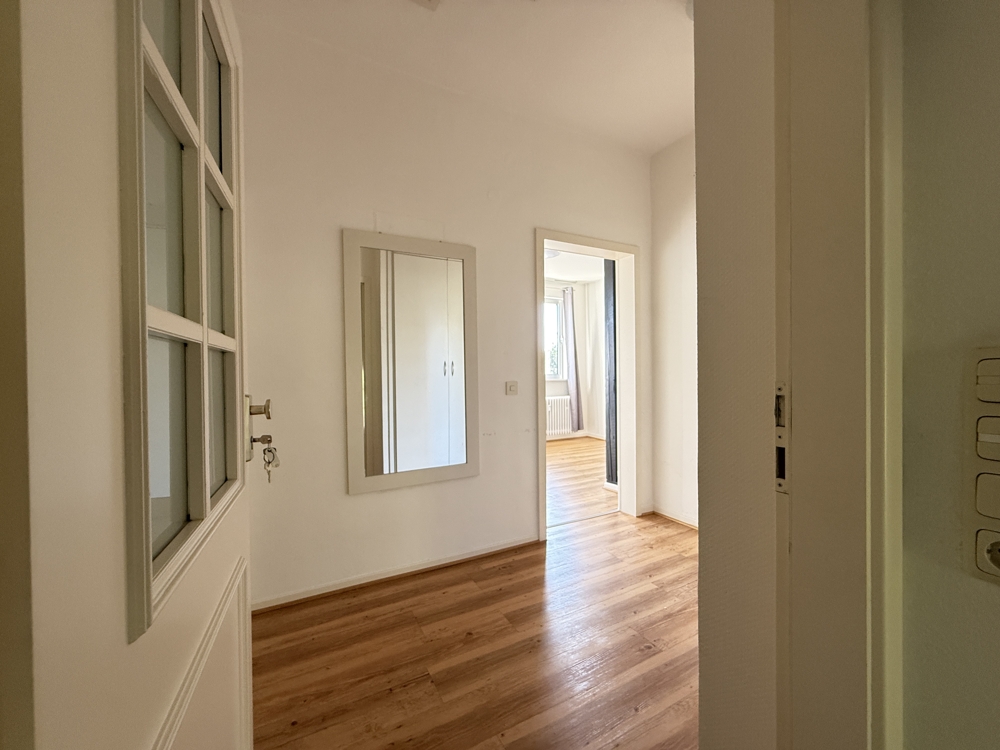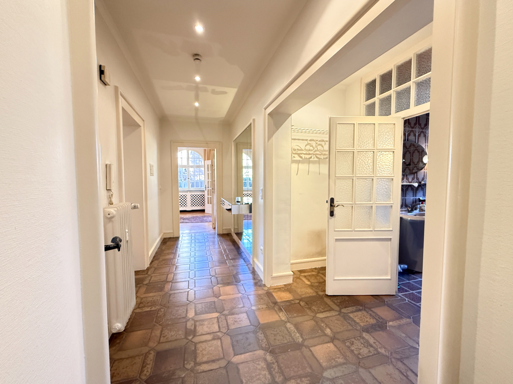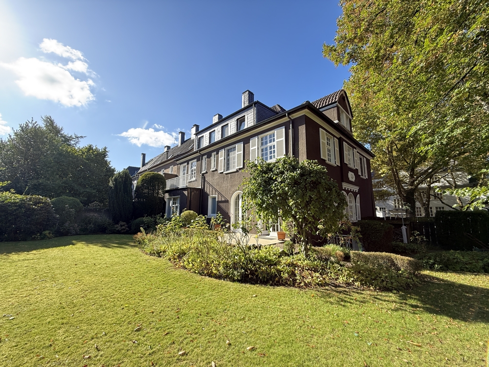 Eine der beeindruckendsten Mietgelegenheiten in Buer: Es besteht aktuell die Möglichkeit die 3 Wohnungen dieser denkmalgeschützten Stadtvilla von 1915 als Ganzes zu nutzen und die großzügige Raumaufteilung im historischen Stil mit zeitgemäßer Ausstattung zu genießen. Damit bietet sich einer Familie die Chance, das gesamte Haus für sich zu bewohnen. Das Erdgeschoss mit ca. 120 m² Wohnfläche empfängt Sie mit einem weitläufigen Dielenbereich und hohen Decken. Das Wohn- und Esszimmer erstreckt sich über eine besonders großzügige Fläche und ist durch zahlreiche große Fenster lichtdurchflutet, was eine freundliche und einladende Atmosphäre schafft. Im Wohnbereich sorgt ein Kamin für zusätzliche Gemütlichkeit. Die beiden Bereiche sind dezent durch eine beeindruckende Holztür getrennt, die bei Bedarf geöffnet werden kann und so einen harmonischen, fließenden Übergang ermöglicht. Das Badezimmer wird gerade saniert. Der Dielenbereich und die Küche sind mit einem Fliesenboden ausgestattet, der den historischen Charakter des Hauses auf besondere Weise unterstreicht. Im Wohn- und Esszimmer sowie im Arbeitszimmer liegt Echtholzparkett. Ein besonderes Highlight ist der weitläufige Garten mit einem kleinen Teehäuschen an der historischen Grenzmauer – ideal als Rückzugsort oder charmantes Raucherhaus. Die Wohnung im ersten Obergeschoss mit ebenfalls 120 m² Wohnfläche überzeugt durch helle, großzügige Räume und eine klassische Raumaufteilung. Drei Zimmer, Küche und Bad bieten vielseitige Nutzungsmöglichkeiten. Ein sonniger Balkon lädt zum Entspannen ein und vermittelt Ruhe und Privatsphäre. Im Dachgeschoss wurden zwei Appartements zu einer Einheit von 70 m² zusammengelegt. Sichtbare Holzbalken prägen den Wohnbereich und schaffen eine gemütliche Atmosphäre. Die kleine Küche kann auf Wunsch geöffnet und in eine offene Wohnküche integriert werden. Ein modern saniertes Duschbad mit Hauswirtschaftsraum sowi