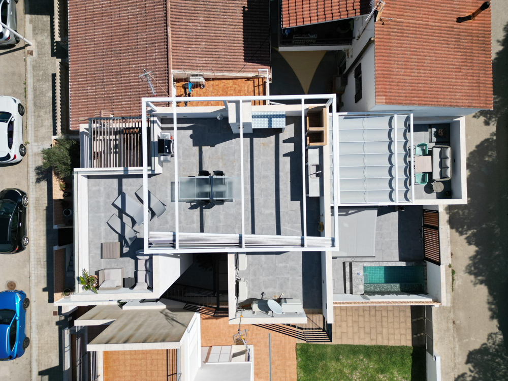 In Son Serra de Marina erwartet Sie ein modernes Haus mit zwei Wohneinheiten, das sich durch seine puristische Architektur auszeichnet. Dies zweigeschossige Zweifamilienwohnhaus bietet nicht nur ein beeindruckendes Design, sondern auch eine Lizenz für Ferienvermietung, einen erfrischenden Pool und einen atemberaubenden Meerblick. Von hier aus können Sie bequem die nur wenige Meter entfernten Strände von Son Serra de Marina erreichen oder einen Spaziergang zum Café El Sol unternehmen. Das zweistöckige Haus besteht aus zwei separaten Wohneinheiten und einer großzügigen Dachterrasse mit einer Außenküche, die Ihnen einen traumhaften Blick auf das Meer bietet. Die untere Wohnung, die barrierefrei gebaut ist, bietet großzügige ca. 115 m² Wohnfläche und verfügt über einen eigenen Stellplatz für einen PKW sowie einen kleinen, erfrischenden Pool. Die obere Wohnung erstreckt sich über ca. 75 m² und verfügt über eine ebenso geräumige Dachterrasse von ca. 75 m², von der aus Sie einen malerischen Blick auf das Meer genießen können. Das Haus verfügt über eine Lizenz für Ferienvermietung für bis zu sechs Personen, was angesichts der Beliebtheit des Ortes und seiner Nähe zum Strand ein äußerst lukratives Geschäftsmodell darstellt. Beide Etagen sind mit Klimaanlagen ausgestattet, die sowohl kühlen als auch heizen können, und es besteht die Möglichkeit, eine Solaranlage zu installieren. Dieses Haus bietet somit nicht nur modernen Komfort, sondern auch eine nachhaltige Energieoption. Wenn Sie nach einem schönen und ruhigen Ort direkt am Meer suchen, dann heißen wir Sie herzlich in Son Serra de Marina willkommen und stehen Ihnen kompetent auf Ihrem Weg zur Verwirklichung Ihrer Wunschimmobilie zur Seite.