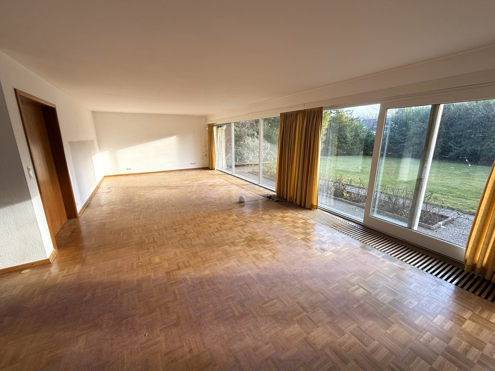 Dieses freistehende Einfamilienhaus befindet sich in absoluter Top-Lage von Herten-Westerholt, unweit des Golfplatzes, auf einem ca. 1.100 m² großen Grundstück. Mit insgesamt 4 Zimmern und ca. 133 m² Wohnfläche bietet es ein ideales Zuhause für Familien oder Paare mit Anspruch an Ruhe, Platz und Privatsphäre. Die klassische Raumaufteilung, der weitläufige Garten sowie die integrierte Garage erhöhen den Wohnkomfort zusätzlich. Im Erdgeschoss erwartet Sie eine separate Küche mit eigenem Raumcharakter, ein Gäste-WC, eine Garderobe sowie ein großzügiges Ess- und Wohnzimmer, das durch eine große Fensterfront besonders lichtdurchflutet ist. Von hier aus besteht ein direkter Zugang zur Terrasse, die nahtlos in den Garten übergeht und den Wohnraum ins Freie erweitert. Das Obergeschoss verfügt über drei komfortabel geschnittene Schlafzimmer sowie ein Badezimmer mit Dusche und Badewanne. An eines der Schlafzimmer grenzt eine kleine Küchenzeile sowie ein separates, kleines WC mit Waschbecken an. Zusätzlich steht ein Balkon mit Blick in den Garten zur Verfügung, der von allen Räumen aus zugänglich ist und einen schönen Ausblick ins Grüne bietet. Das Gebäude ist teilunterkellert und bietet damit zusätzliche Nutz- und Abstellfläche. Der Garten stellt ein besonderes Highlight dar: Neben der Terrasse bietet er eine große, gepflegte Grünfläche und ist nahezu vollständig von Bäumen, Büschen und Tannen eingefasst, wodurch ein hohes Maß an Privatsphäre und ein naturnahes Wohngefühl entsteht. Die Immobilie befindet sich in einem dem Alter entsprechenden sanierungsbedürftigen Zustand. Durch Undichtigkeiten am Balkon liegen Feuchtigkeitsschäden im Geräteraum und an einem Fenster im Wohnzimmer vor. Der Fokus dieser Immobilie liegt auf der hervorragenden Lage und dem großzügigen Grundstück, sowie der Nähe zum Wasserschloss Westerholt und dem angrenzenden Golfplatz.. Nutzen Sie Ihre Chance und vereinbaren Sie einen Besichtigungstermin!